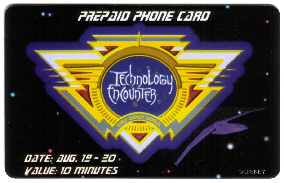 The card includes branding related to Walt Disney World and Walt Disney Land, reflecting connections to the Disney theme parks known for their attractions involving animation and amusement park rides. The card also references the “10m Disney Technology Encounter (Space Motif) August, 1997,” indicating that it is associated with a specific technology-themed Disney attraction or event held during that period.