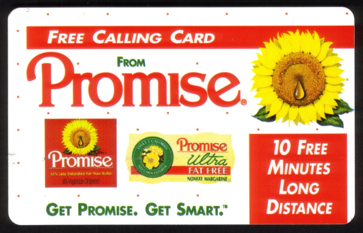 This collectible phone card was produced by Innovative Telecom and is designed for use as a prepaid calling card, combining promotional marketing for Promise products with practical telephony service. The combination of health-focused branding and phone card utility reflects marketing strategies from the late 1990s.