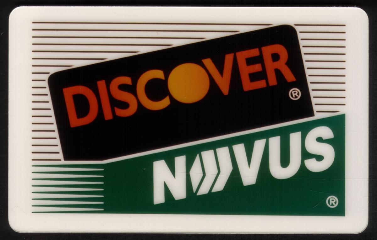 Set of four promotional phone cards featuring Visa, MasterCard, Discover with Novus, and American Express logos, combining financial brands with telecommunications. |
