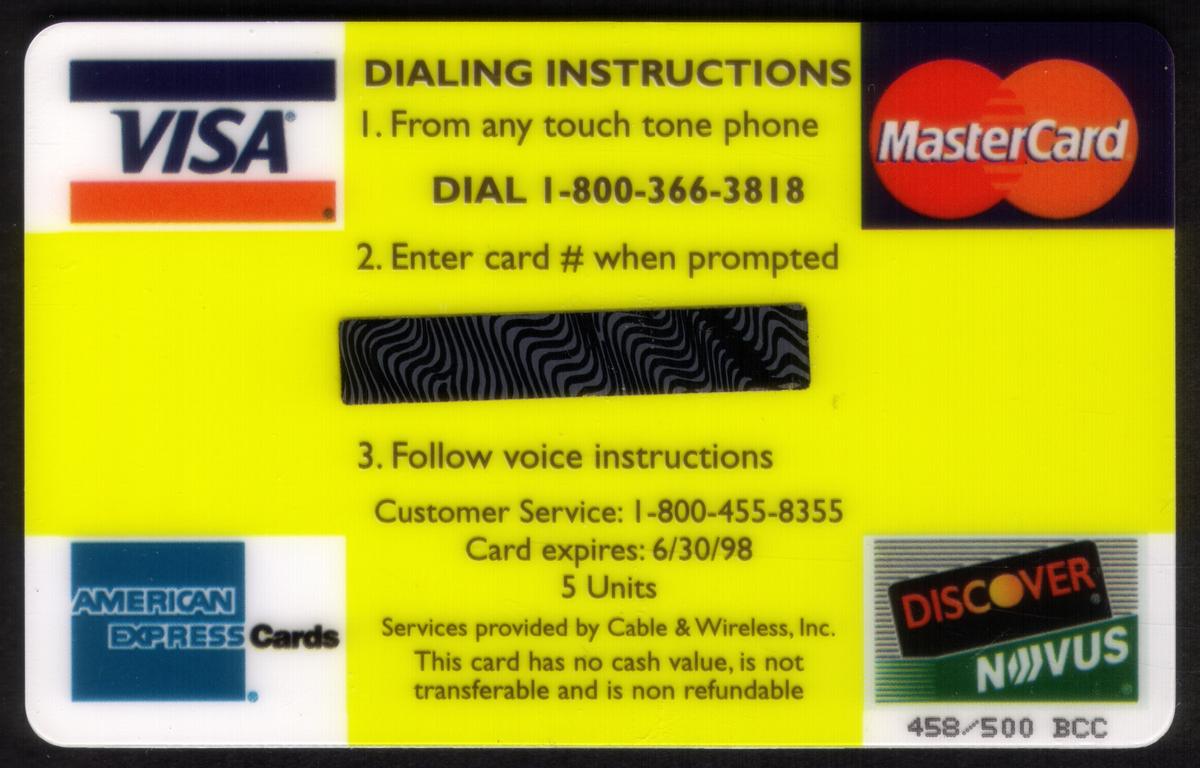 Since we have the world's largest inventory of USA phonecards for collectors, you will not necessarily receive the identical serial/batch/PIN number that we have scanned/pictured.