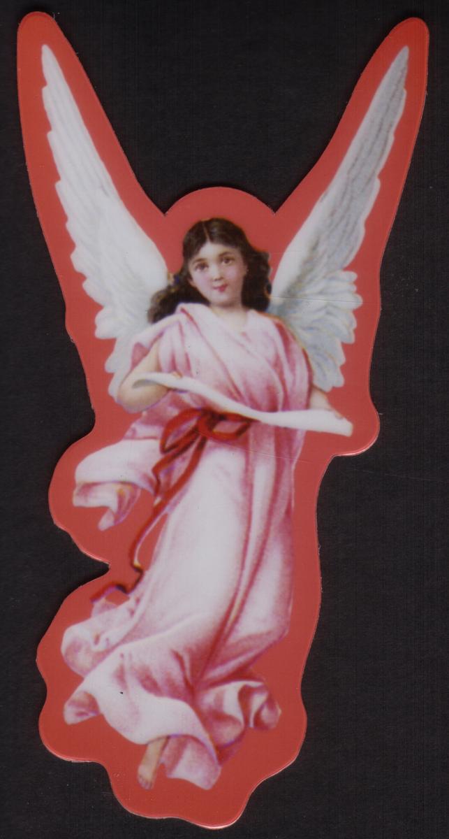 The third angel is set on a red background and wears a pink gown with a darker pink sash tied around the waist. This angel has dark brown hair and holds a scroll or ribbon that extends from the arms. The figure’s wings are spread wide, enhancing the impression of grace and elevation. All three cards are marked with Christian religious symbolism and are produced by USACard Corporation. The set is identified as SKU-14793 and labeled as "10u Die-Cut Angels With Red, Purple, & Turquoise Backgrounds Set of 3."