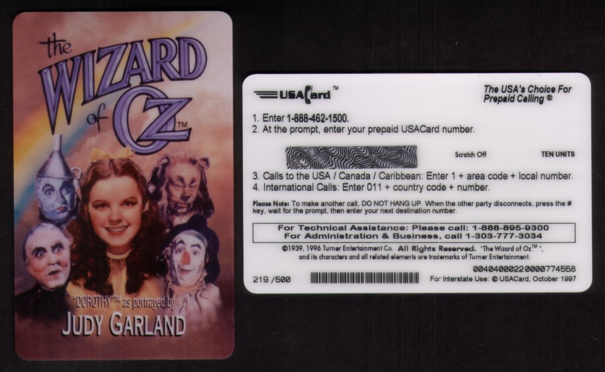 This collectible card was produced by USACard Corporation and is associated with Turner Entertainment. It celebrates the 10-unit value and showcases the five main movie characters alongside the Wizard of Oz logo, highlighting its connection to movie classics and film memorabilia.