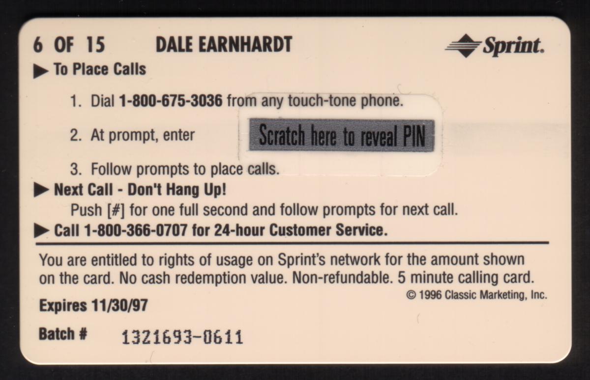 Since we have the world's largest inventory of USA phonecards for collectors, you will not necessarily receive the identical serial/batch/PIN number that we have scanned/pictured.