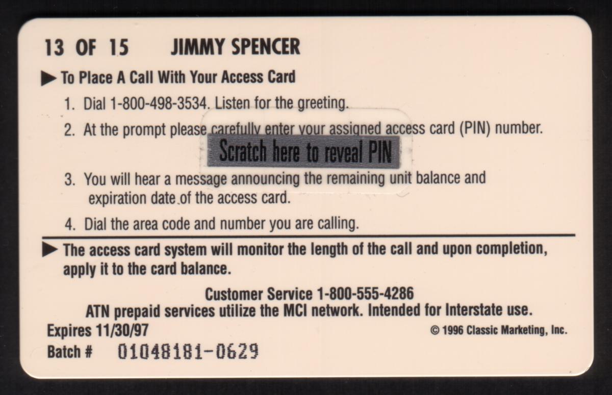 $5. Jimmy Spencer (Card #13 of 15) Assets Racing 1996