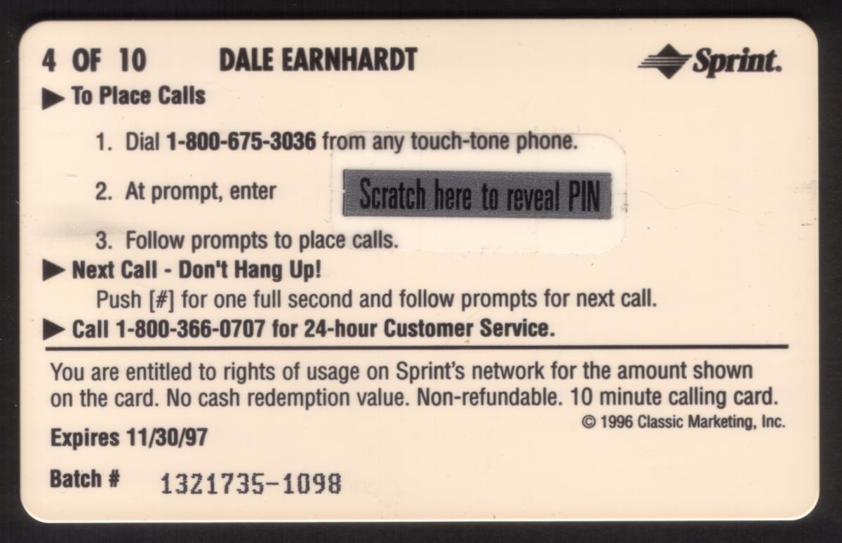 $10. Dale Earnhardt (Card #4 of 10) Assets Racing 1996