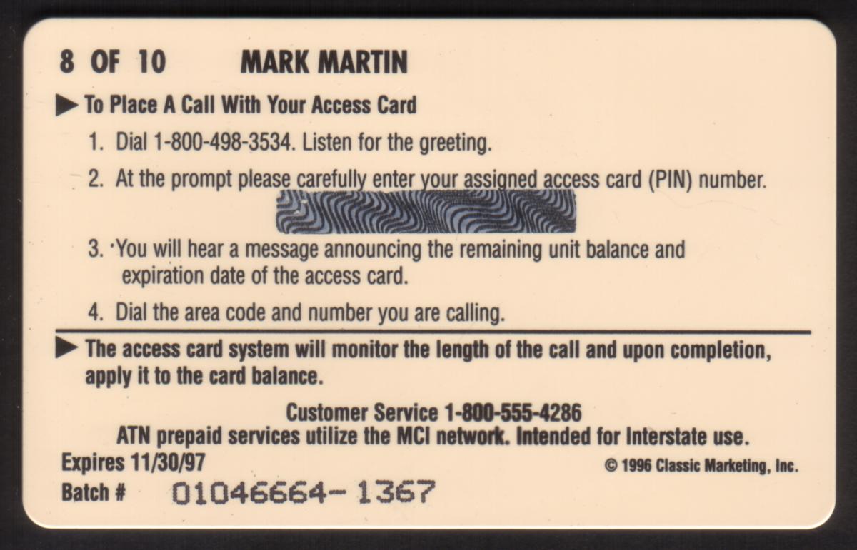 Since we have the world's largest inventory of USA phonecards for collectors, you will not necessarily receive the identical serial/batch/PIN number that we have scanned/pictured.
