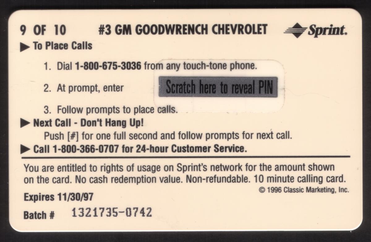 Since we have the world's largest inventory of USA phonecards for collectors, you will not necessarily receive the identical serial/batch/PIN number that we have scanned/pictured.