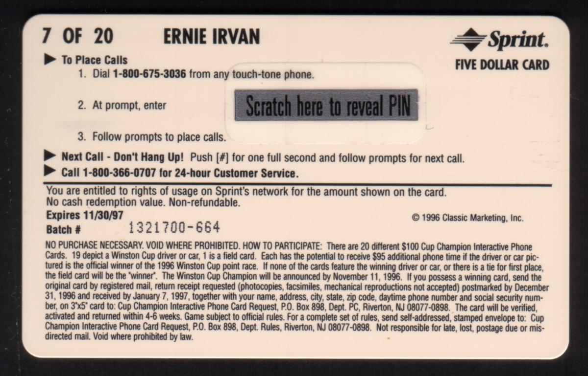 Since we have the world's largest inventory of USA phonecards for collectors, you will not necessarily receive the identical serial/batch/PIN number that we have scanned/pictured.