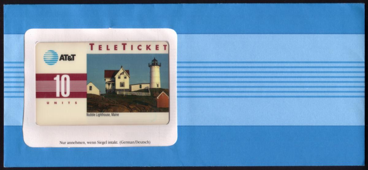 This collectible phone card highlights rural Americana through the iconic lighthouse, which is a noted scenic structure in the group 4 series. The card is from a German sealed edition, referencing its collectible status and origin. It reflects the classic coastal scenery typical to Maine, combining maritime heritage with telecommunications history.