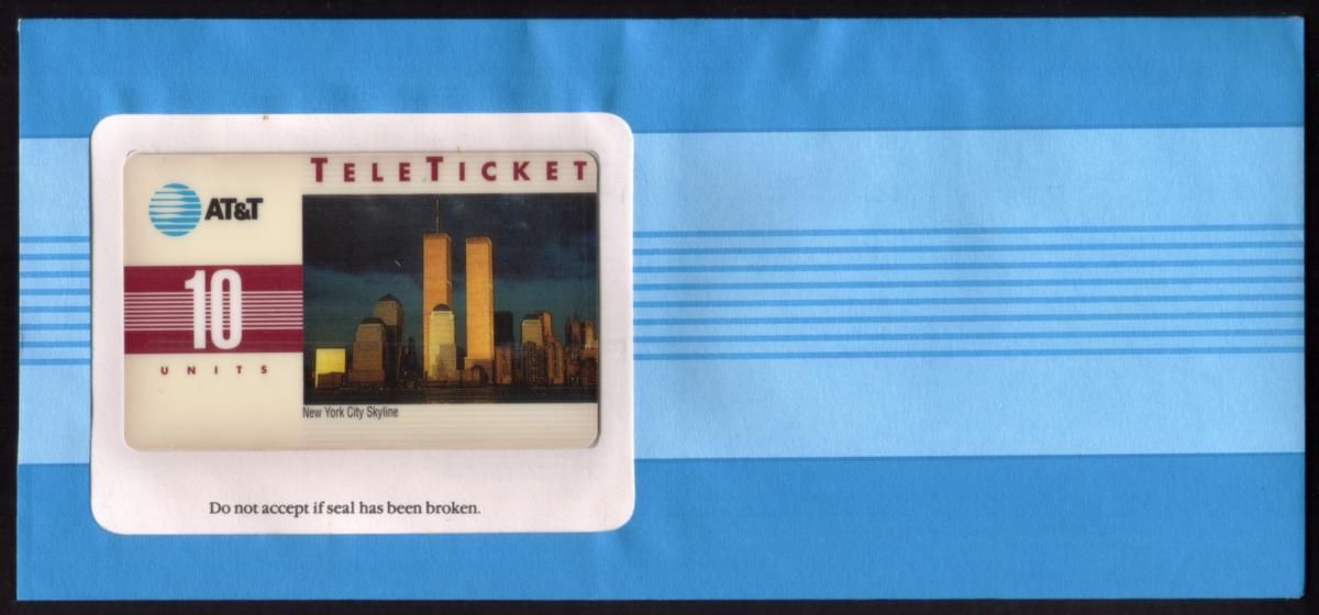 This sealed collectible card represents a piece of New York City history with the Twin Towers before the events of 9/11. It is part of a series identified with keywords including World Trade Center, Twin Towers, 9/11, NYC travel, and sightseeing, making it a notable item for collectors interested in New York City memorabilia or telecommunications collectibles from AT&T.