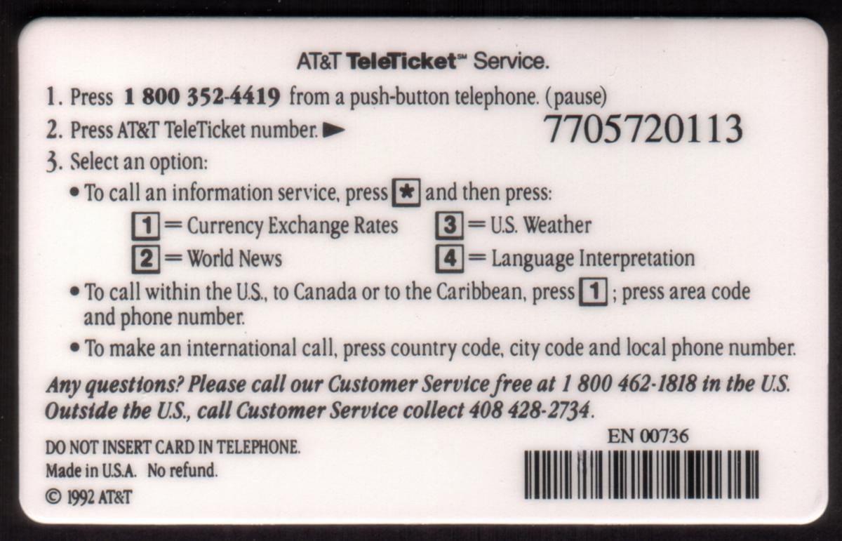 Since we have the world's largest inventory of USA phonecards for collectors, you will not necessarily receive the identical serial/batch/PIN number that we have scanned/pictured.
