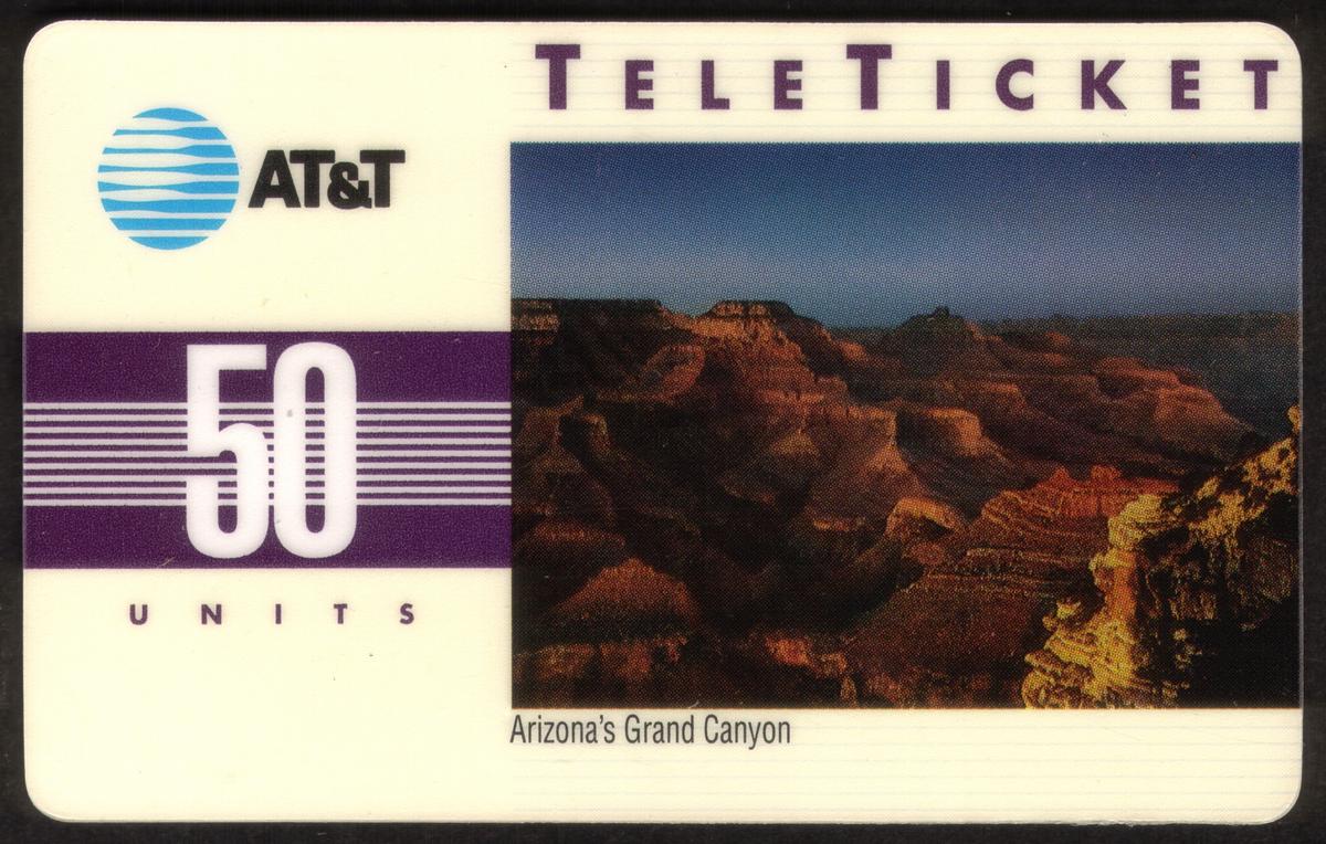 The phone card is associated with AT&T Teleticket, indicating it is a telecommunication phone card issued by AT&T. The card prominently displays the AT&T logo and WorldCom branding near the bottom right, identifying the service providers involved. The layout includes a value indicator in the form of a "50u" marking, which denotes the card’s stored phone credit or units.