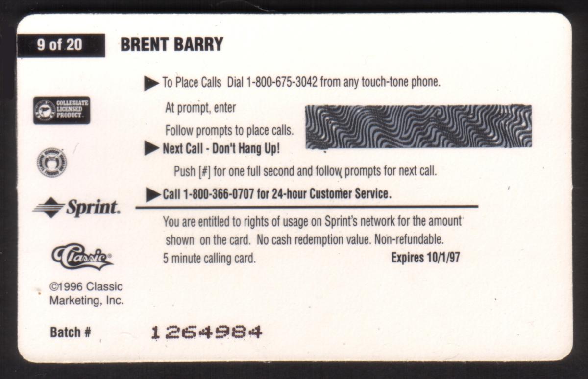 The card includes a large red "$5" symbol in the upper left corner, indicating the card’s value. The top right corner displays the "Clear Assets" logo in gold lettering. Across the bottom right of the card, the name "BARRY" is printed in uppercase red letters, and directly below in lowercase black letters is the first name "brent."