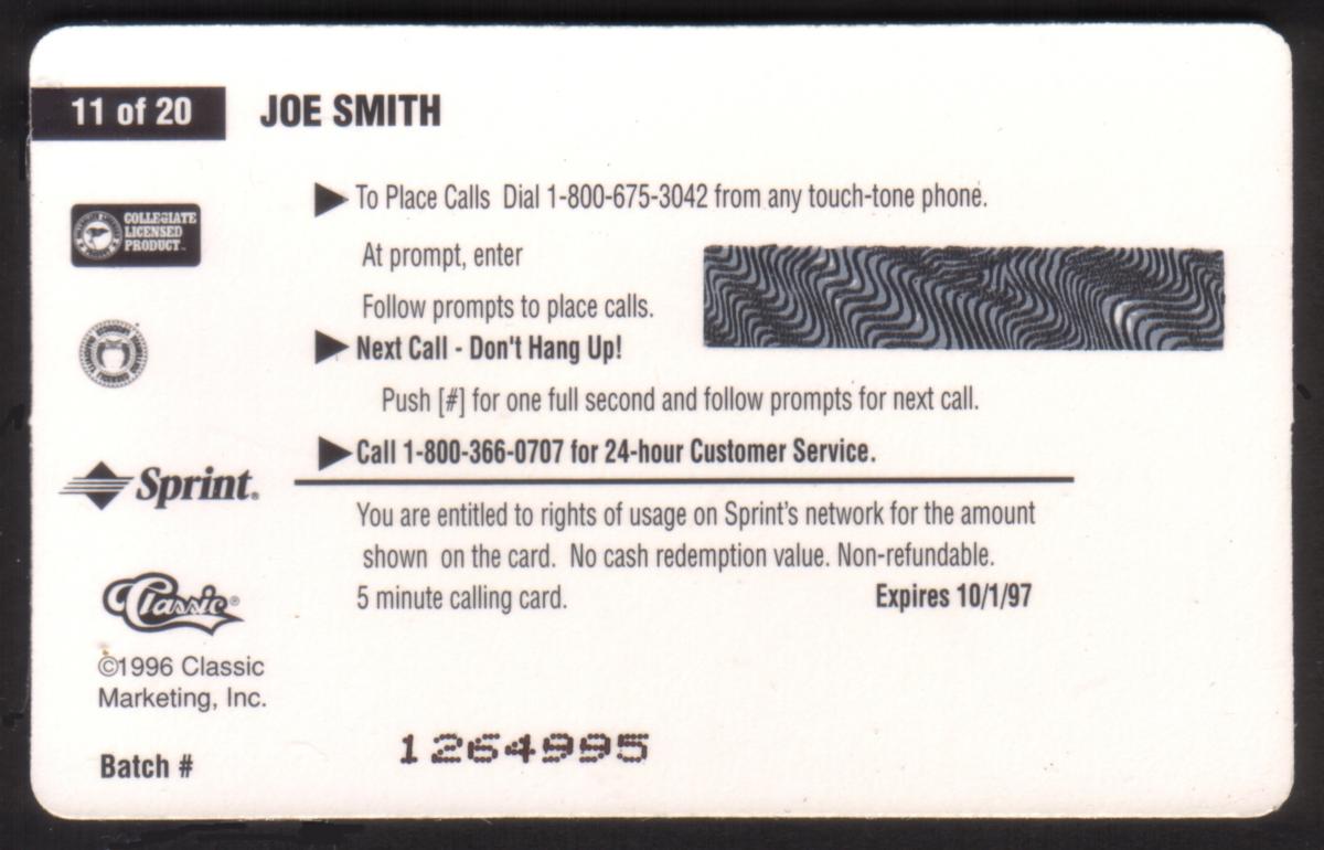 Since we have the world's largest inventory of USA phonecards for collectors, you will not necessarily receive the identical serial/batch/PIN number that we have scanned/pictured.