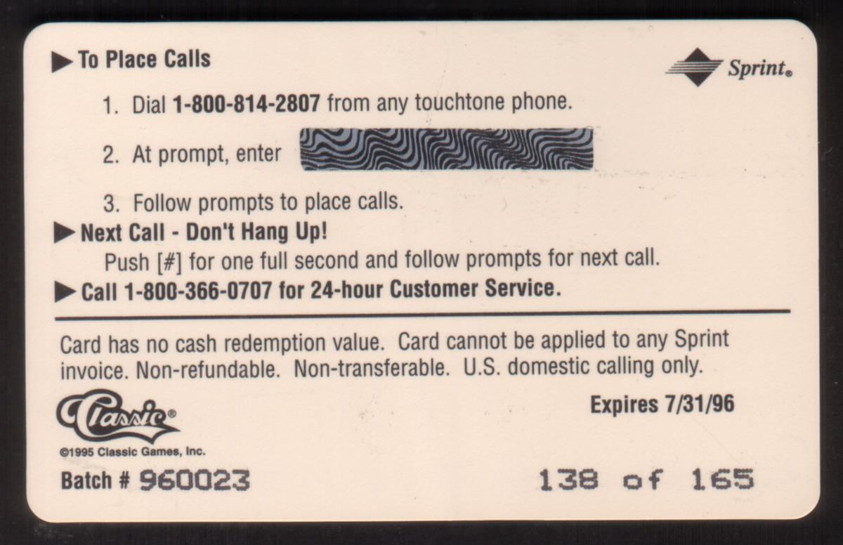 Since we have the world's largest inventory of USA phonecards for collectors, you will not necessarily receive the identical serial/batch/PIN number that we have scanned/pictured.
