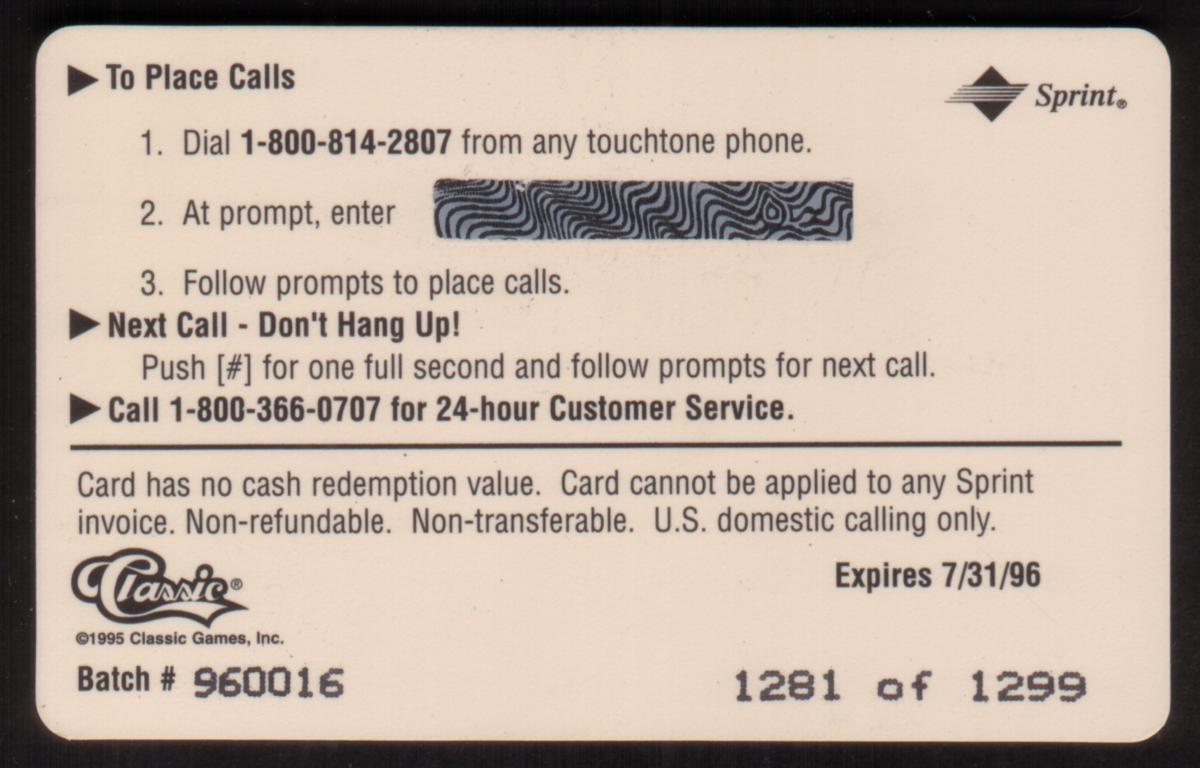 Since we have the world's largest inventory of USA phonecards for collectors, you will not necessarily receive the identical serial/batch/PIN number that we have scanned/pictured.
