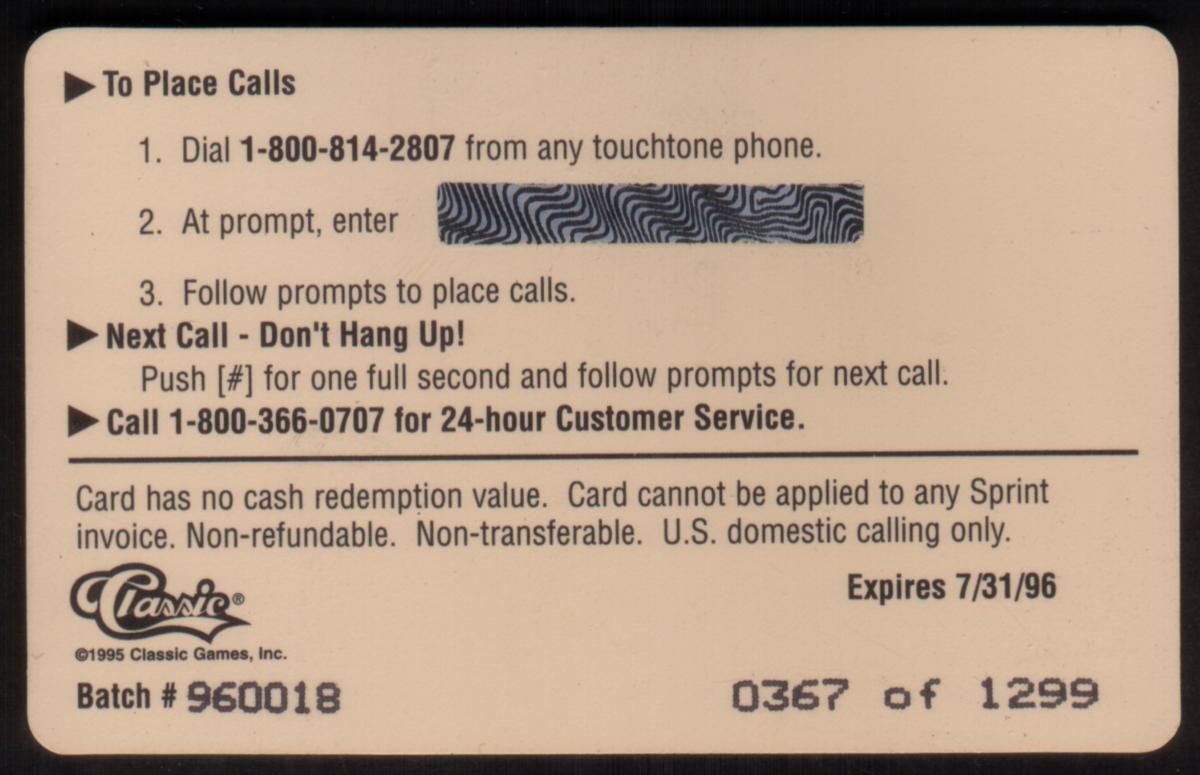 Since we have the world's largest inventory of USA phonecards for collectors, you will not necessarily receive the identical serial/batch/PIN number that we have scanned/pictured.