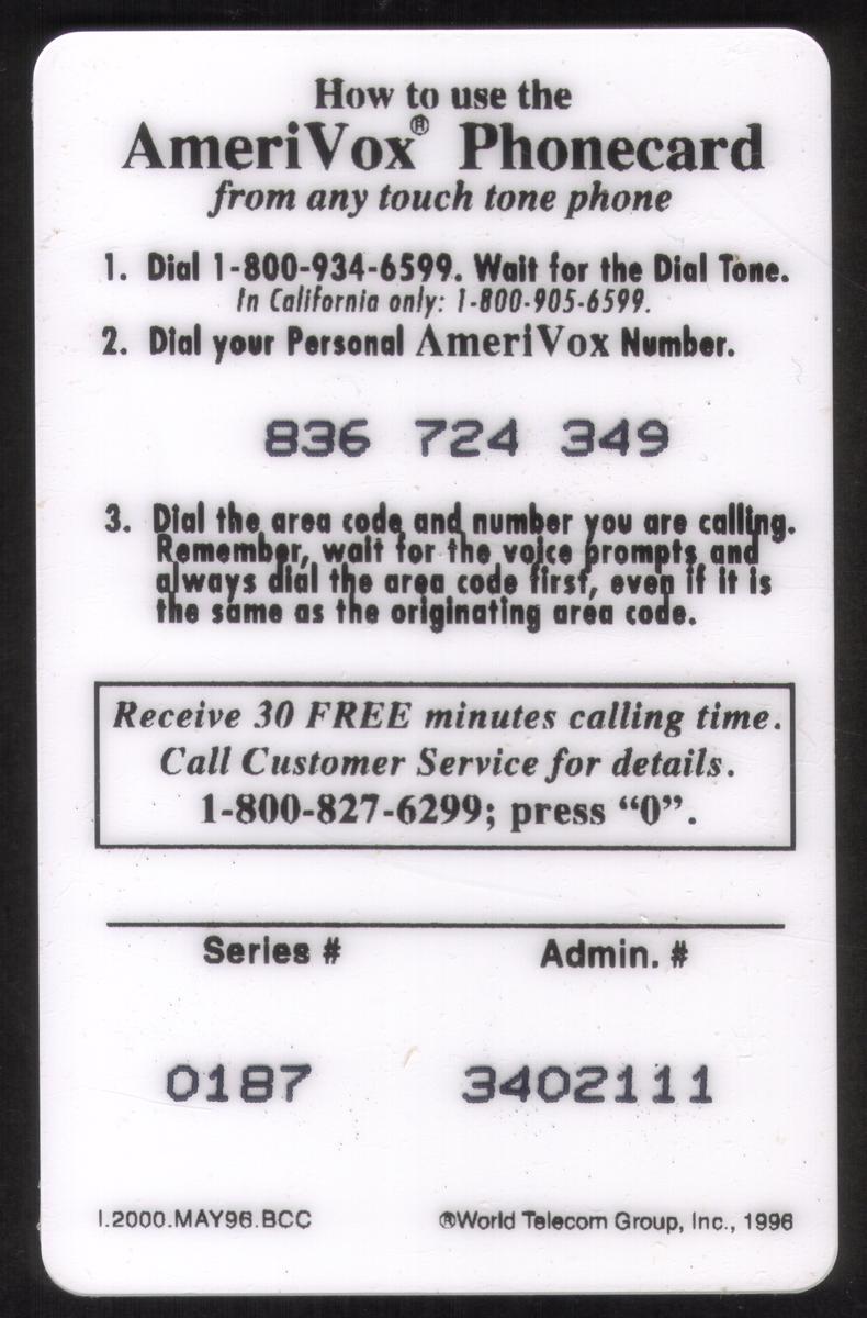 Since we have the world's largest inventory of USA phonecards for collectors, you will not necessarily receive the identical serial/batch/PIN number that we have scanned/pictured.