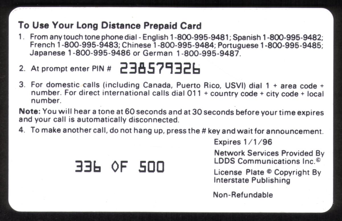 Since we have the world's largest inventory of USA phonecards for collectors, you will not necessarily receive the identical serial/batch/PIN number that we have scanned/pictured.