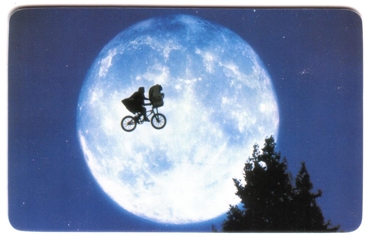 This set of four collectible phone cards features iconic scenes from the Hollywood science fiction movie *E.T. The Extra-Terrestrial*. Each card highlights a memorable moment from the film.