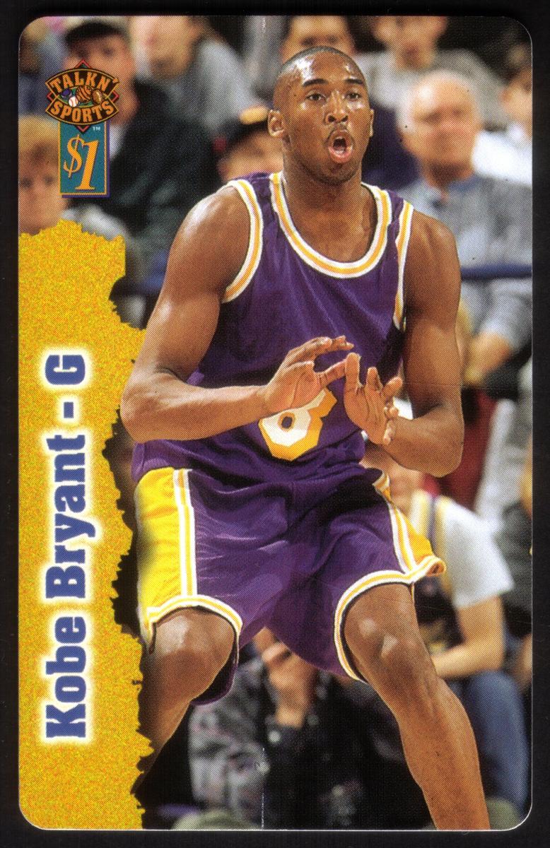 This card celebrates Kobe Bryant’s status as a notable basketball player for the Lakers, displaying authentic sports imagery and official branding relevant to NBA fans and collectors. The vivid colors of the uniform and focused expression capture the intensity of professional basketball during the era.