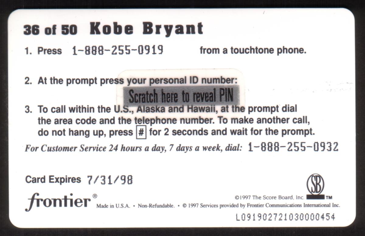 Since we have the world's largest inventory of USA phonecards for collectors, you will not necessarily receive the identical serial/batch/PIN number that we have scanned/pictured.