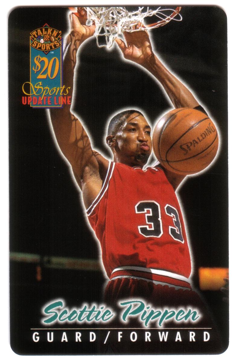 The card highlights the sport of basketball, emphasizing key elements like basketballs and the identities of professional basketball players. The text “Sports Update: Scottie Pippen” is clearly visible, along with designation of the sport as NBA basketball. The card’s theme focuses on basketball and the NBA, showing respect for the sport and its players through vivid imagery and carefully chosen typography.