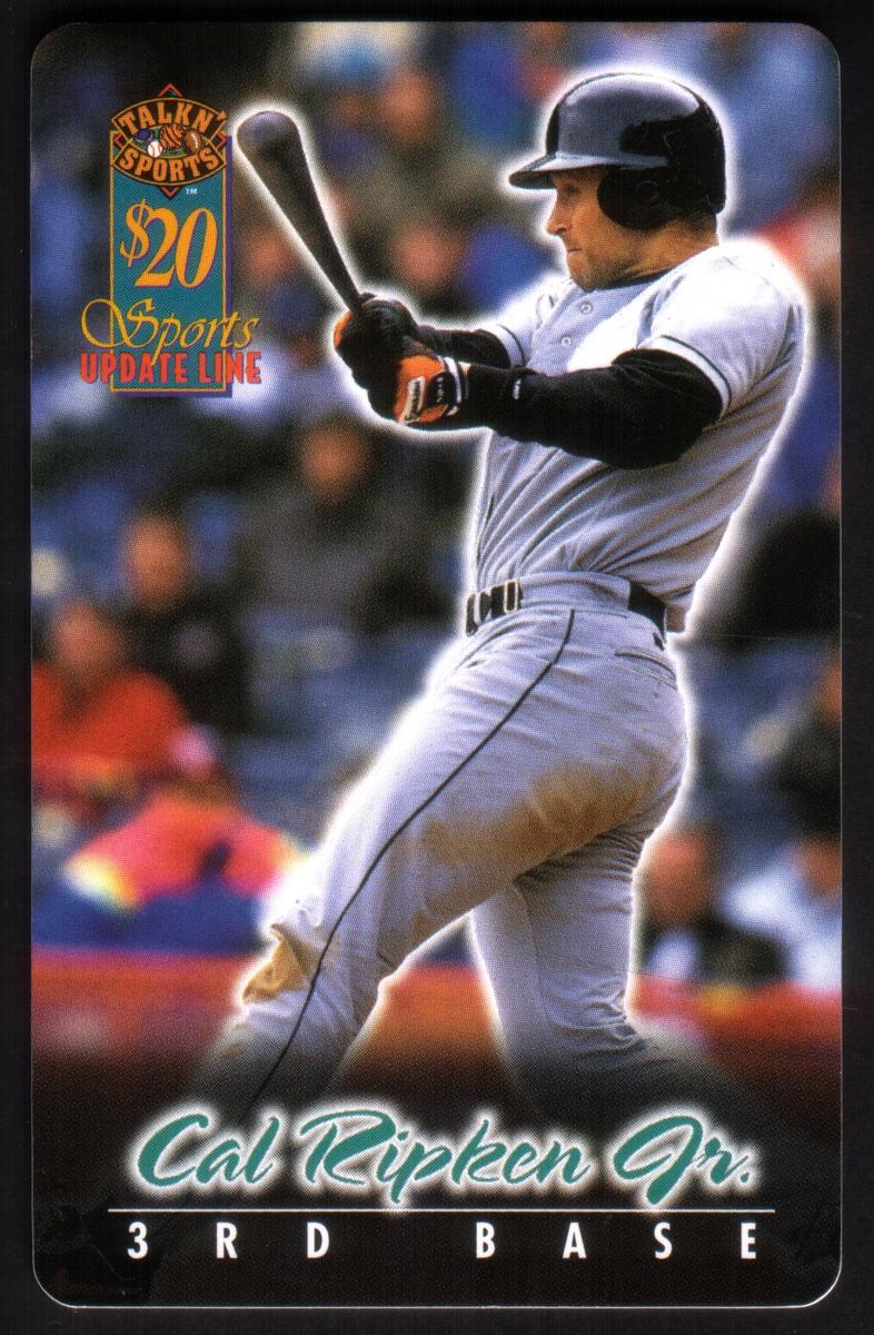 The card bears the branding "Talk N' Sports $20 Sports Update Line" in the upper left corner, indicating it is associated with a sports update series. At the bottom, Cal Ripken Jr.’s name is prominently displayed in teal script, with the text "3RD BASE" in white capital letters directly below, indicating his position on the field.