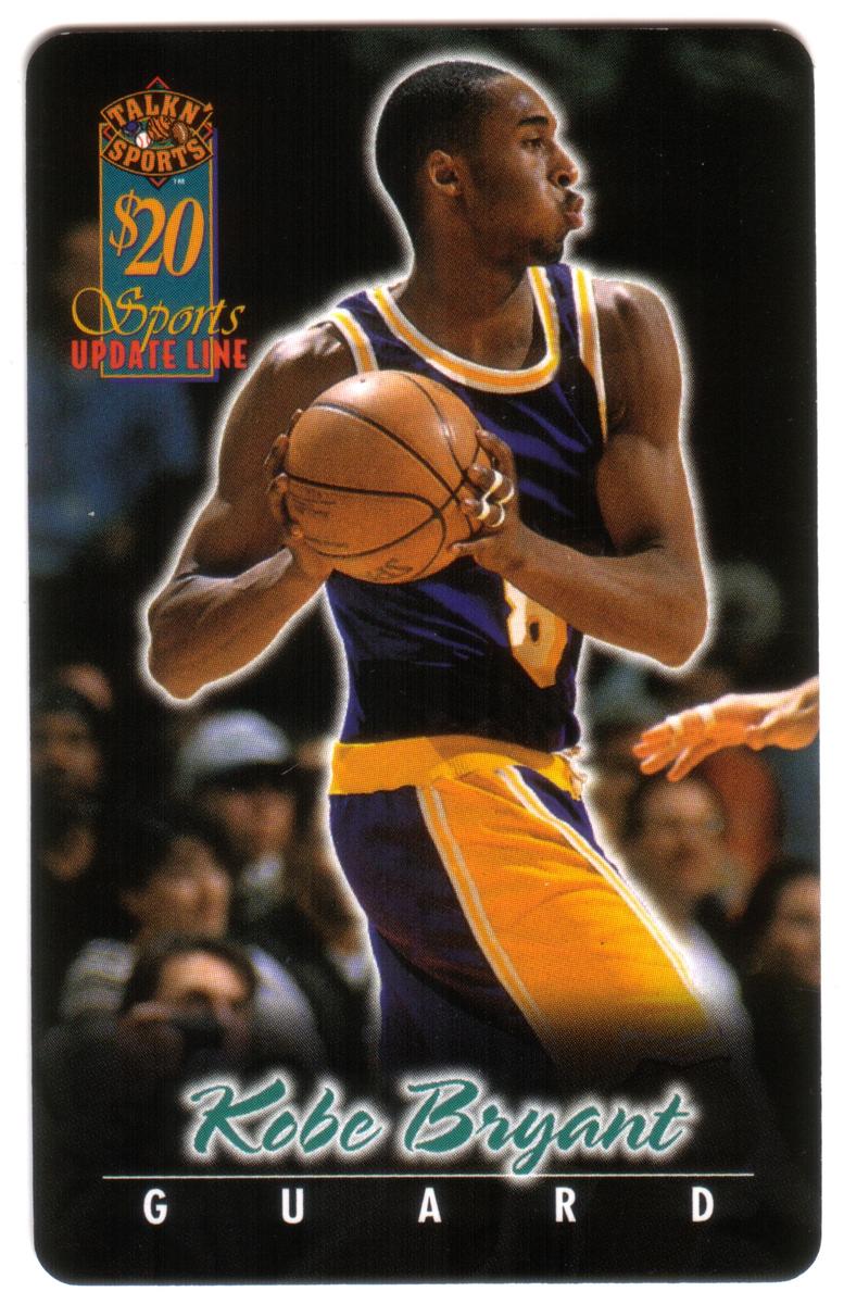 At the top left corner of the card, there is branding for "Talk N' Sports" alongside a $20 denomination label and the phrase "Sports Update Line" in red and gold text. The overall design emphasizes Kobe Bryant as a key figure in basketball and sports collectibles, associating him with the National Basketball Association (NBA).