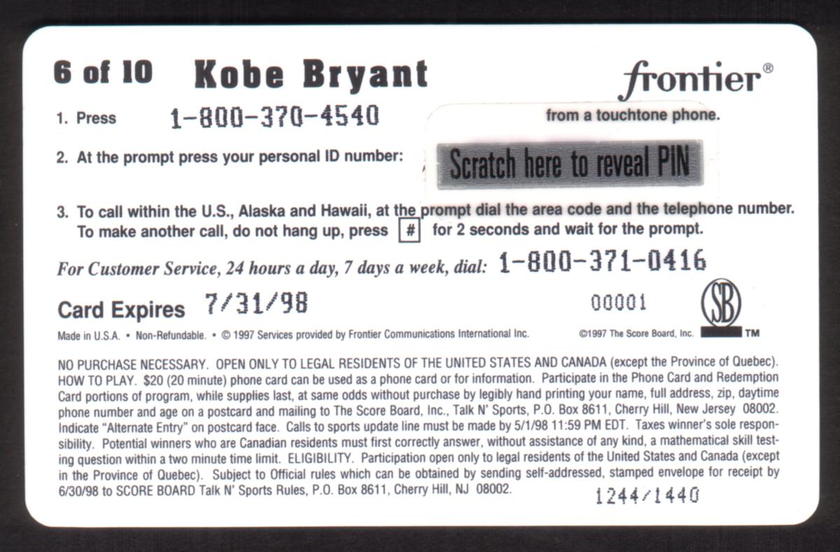 Since we have the world's largest inventory of USA phonecards for collectors, you will not necessarily receive the identical serial/batch/PIN number that we have scanned/pictured.