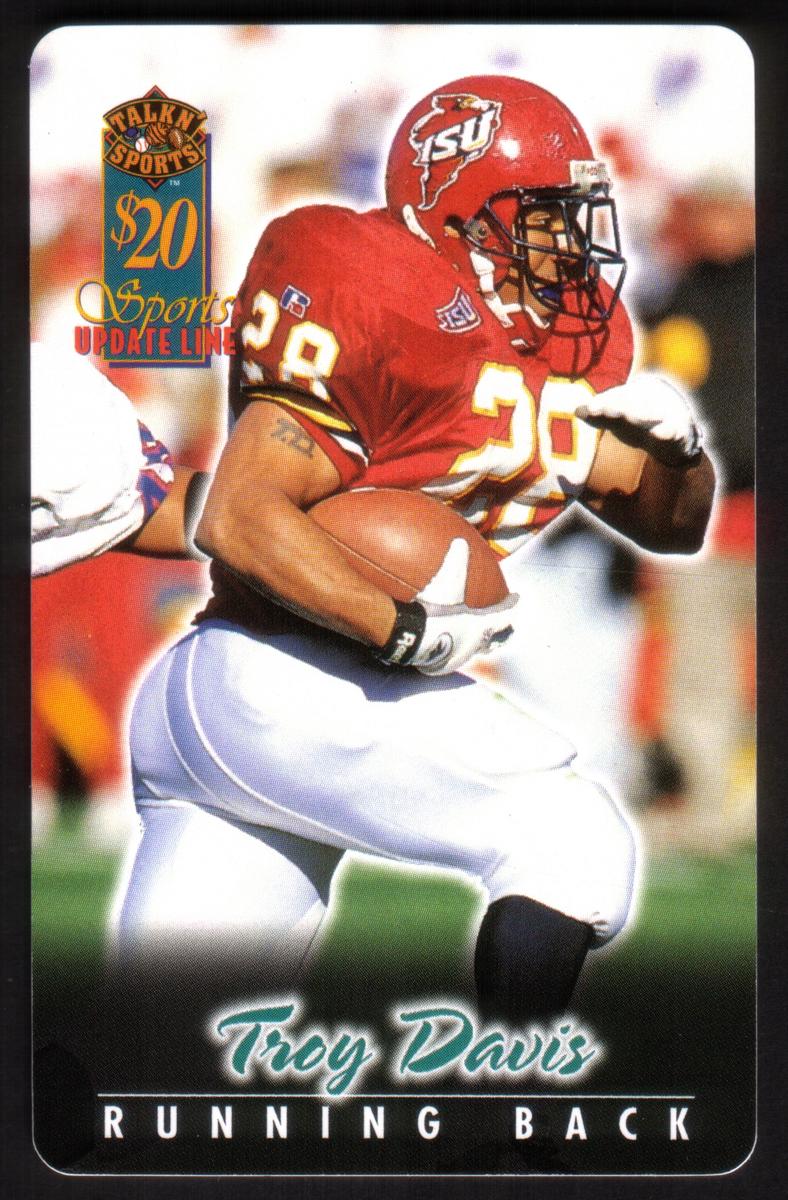 Overall, the card serves as a sports collectible focused on Troy Davis within the context of NFL football, specifically highlighting his career through the "Talk N' Sports $20" card set by The Score Board.