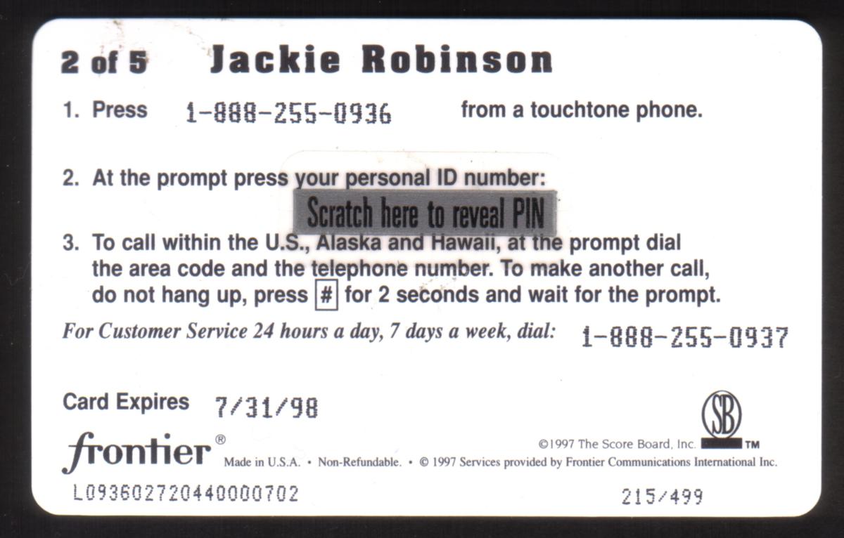 Jackie Robinson is recognized here as a Major League Baseball player who played for the Brooklyn Dodgers, a historic figure in baseball for breaking the sport's color barrier. The card is number 2 of 5 in a vertical collectible series related to Jackie Robinson.