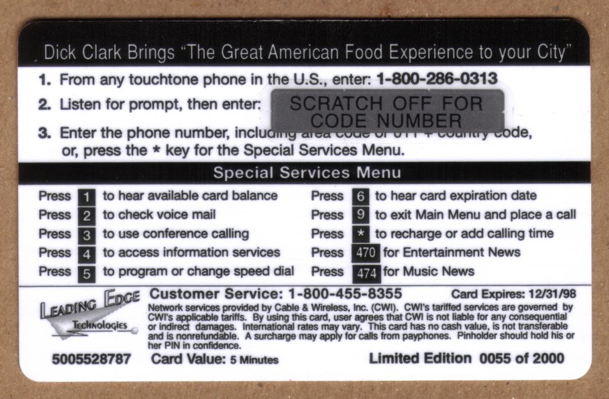 Since we have the world's largest inventory of USA phonecards for collectors, you will not necessarily receive the identical serial/batch/PIN number that we have scanned/pictured.