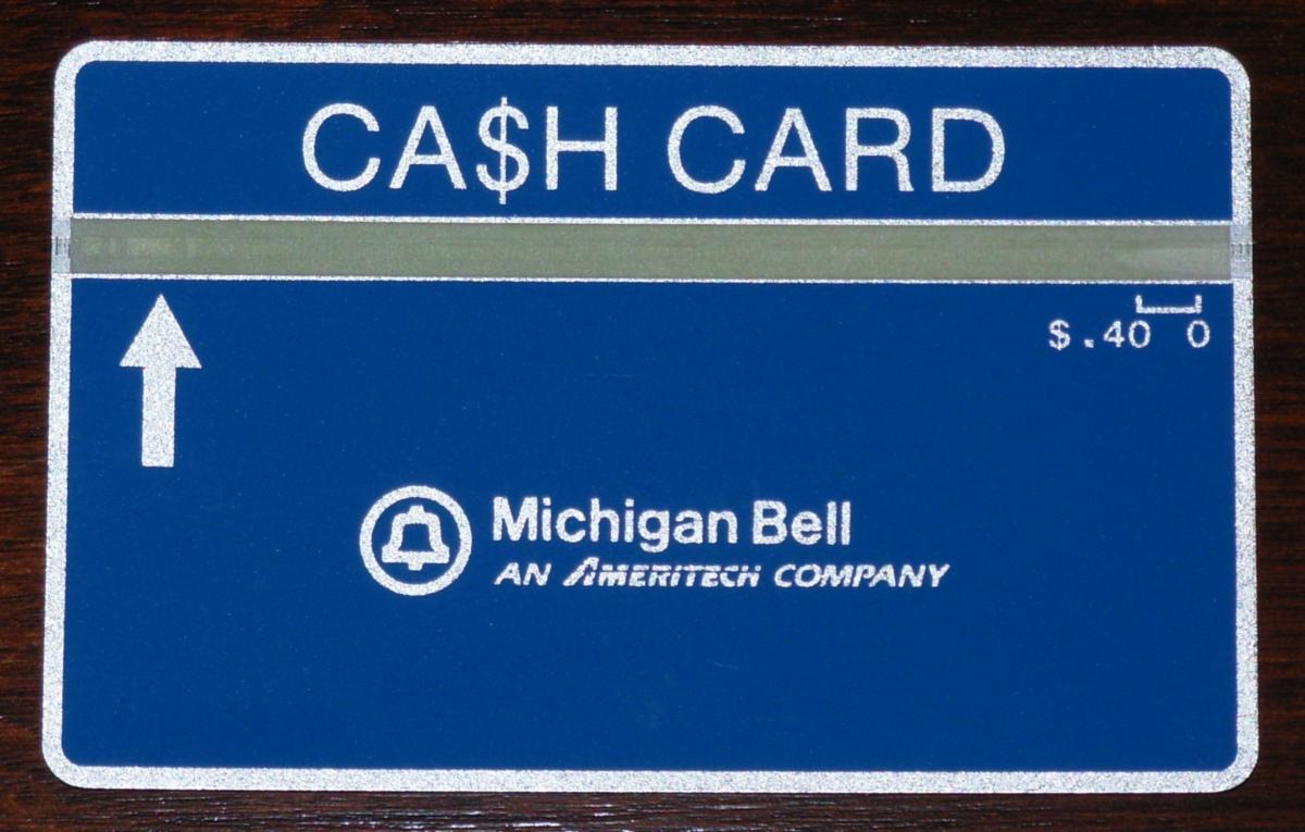 The collectible card features a prominent logo of Michigan Bell Ameritech centered near the top. The card includes a blue and white color scheme with a bold "$0.40" displayed prominently in the upper right-hand corner, indicating the value of the card as forty cents. The card integrates an optical stripe across the lower section, intended for use with compatible phone systems.