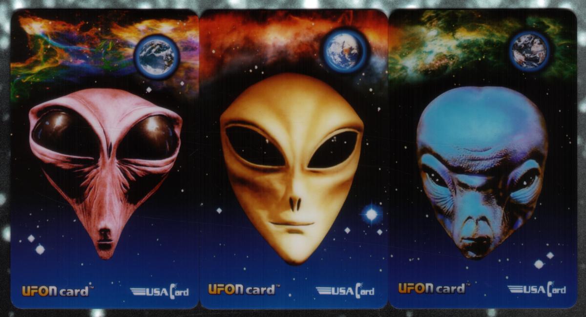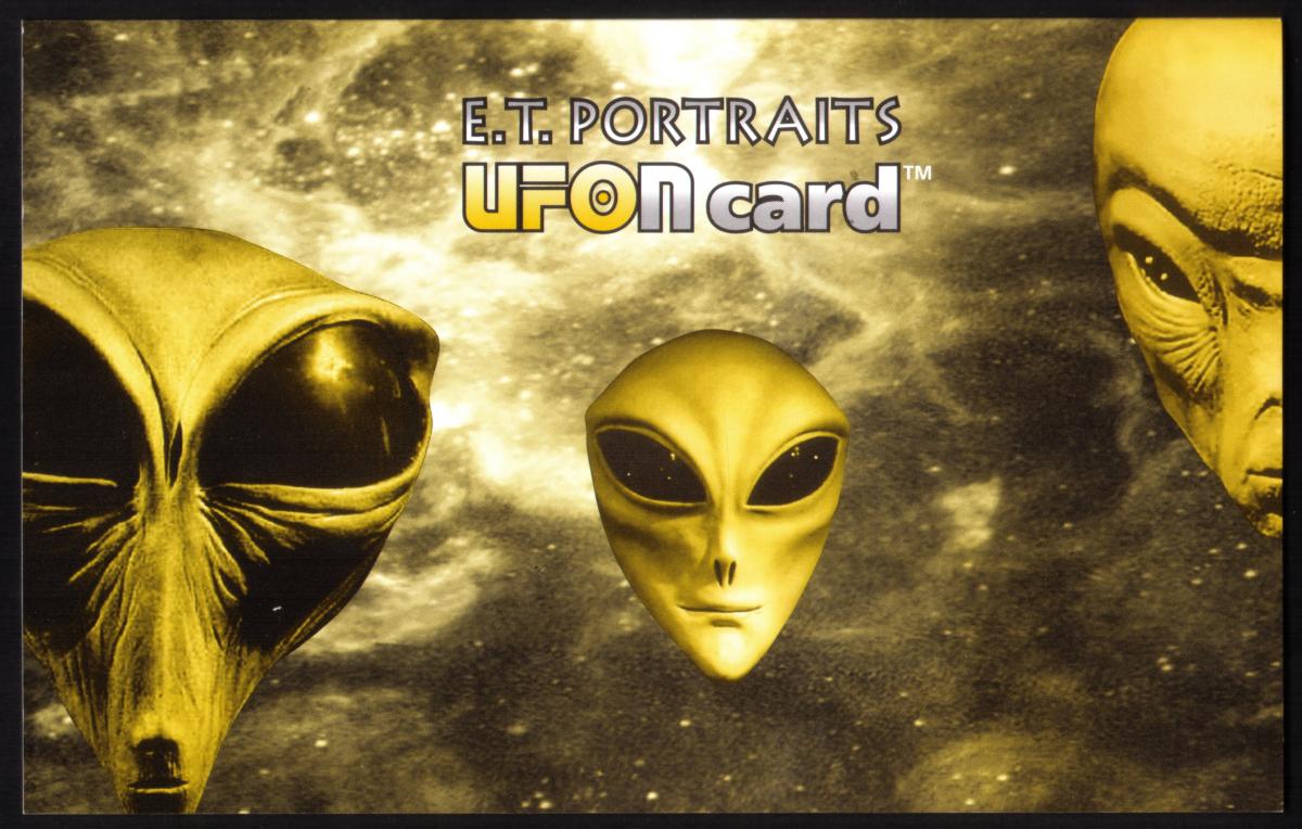 “UFONcard” is printed on the card, indicating the collectible series, along with the title “ET Portrait Series.” The card reflects themes of alien visitation and UFO phenomena, making it a distinctive item for collectors interested in extraterrestrial art and space-related fantasy illustrations.