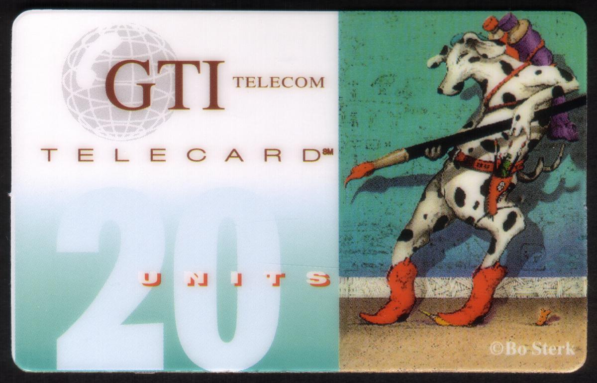Overall, this phone card combines artistic fantasy with animal imagery, making it a distinctive item for collectors interested in animal-themed art cards or fantasy-themed phone cards. The detailed artwork and official branding by GTI Telecom, Inc. make it a notable collectible within the Dog Gone Artist series by Bo Sterk.