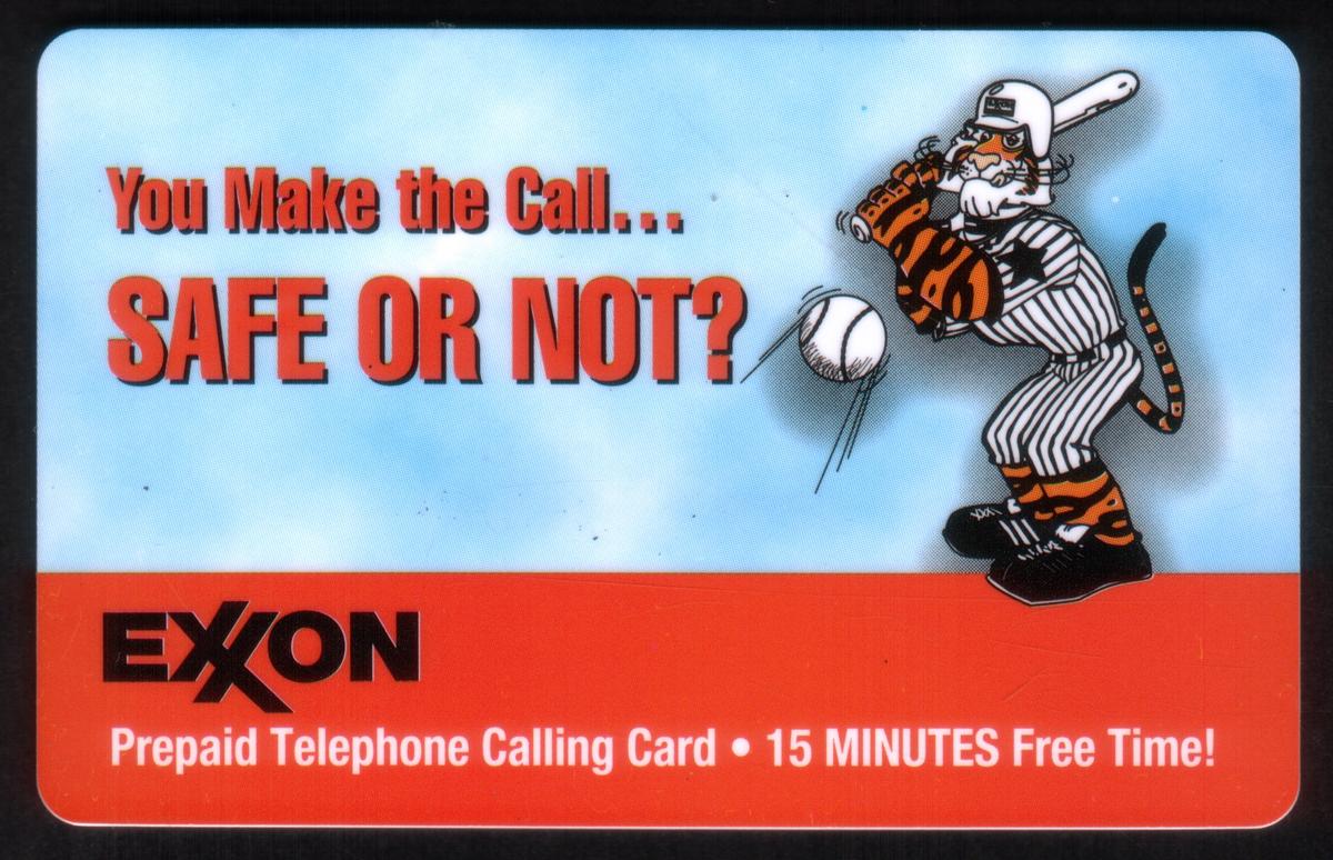 The card includes branding related to Exxon, a multinational energy corporation, connecting the image to corporate trademarks and promotional materials. The title "Safe or Not?" is visible, suggesting a thematic question about the sport scenario. The card is marked with a value of 15m and includes detailed graphics representing a mix of sports, animals, and artistic design.