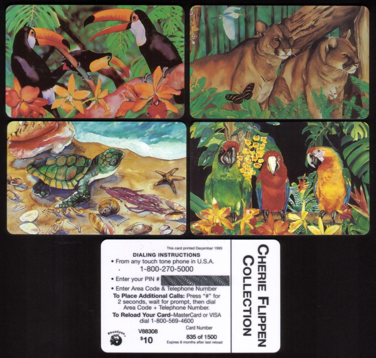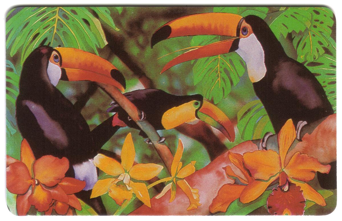 ($50.) Toucans, Lions, Parrots, Turtle. Paintings by Flippen 4 Card