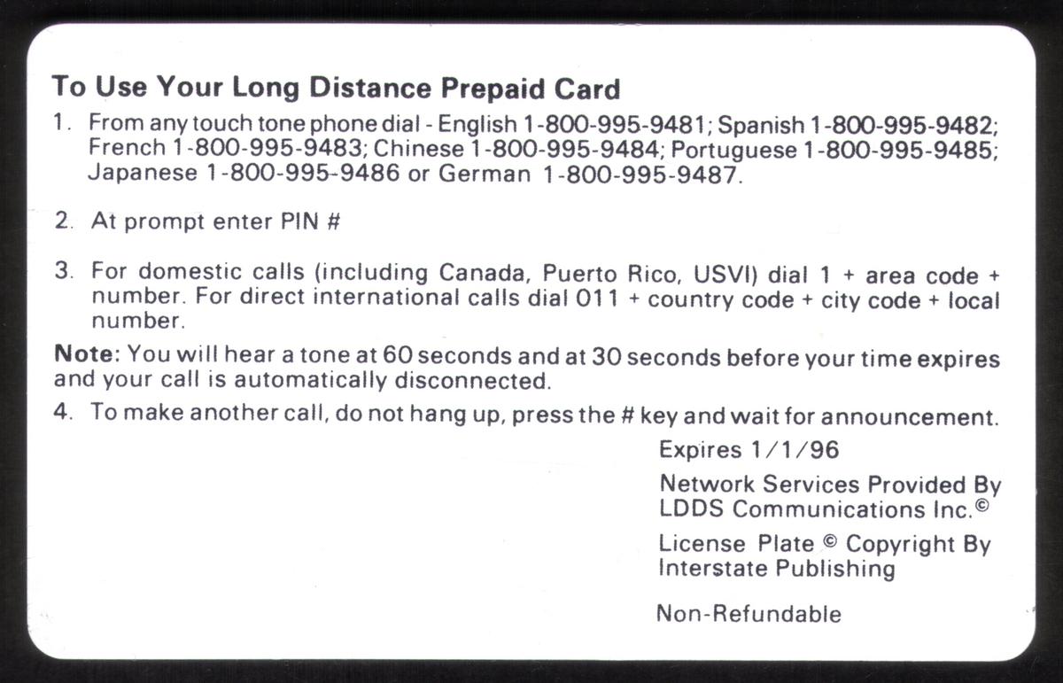 Since we have the world's largest inventory of USA phonecards for collectors, you will not necessarily receive the identical serial/batch/PIN number that we have scanned/pictured.