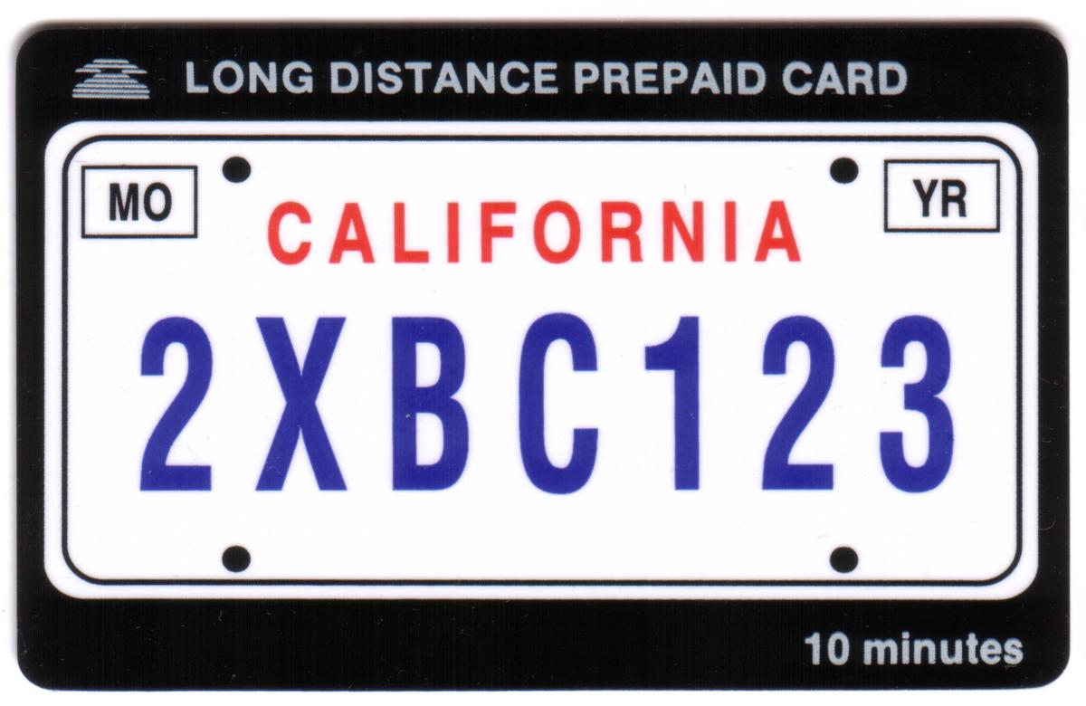No other names or specific dates are present on the visible side of the card, and the information is clearly focused on the combination of Western United States imagery, automotive license plates, and telecommunications usage. The card is a representation of phone card collectibles tied to U.S. regional culture and automotive heritage.