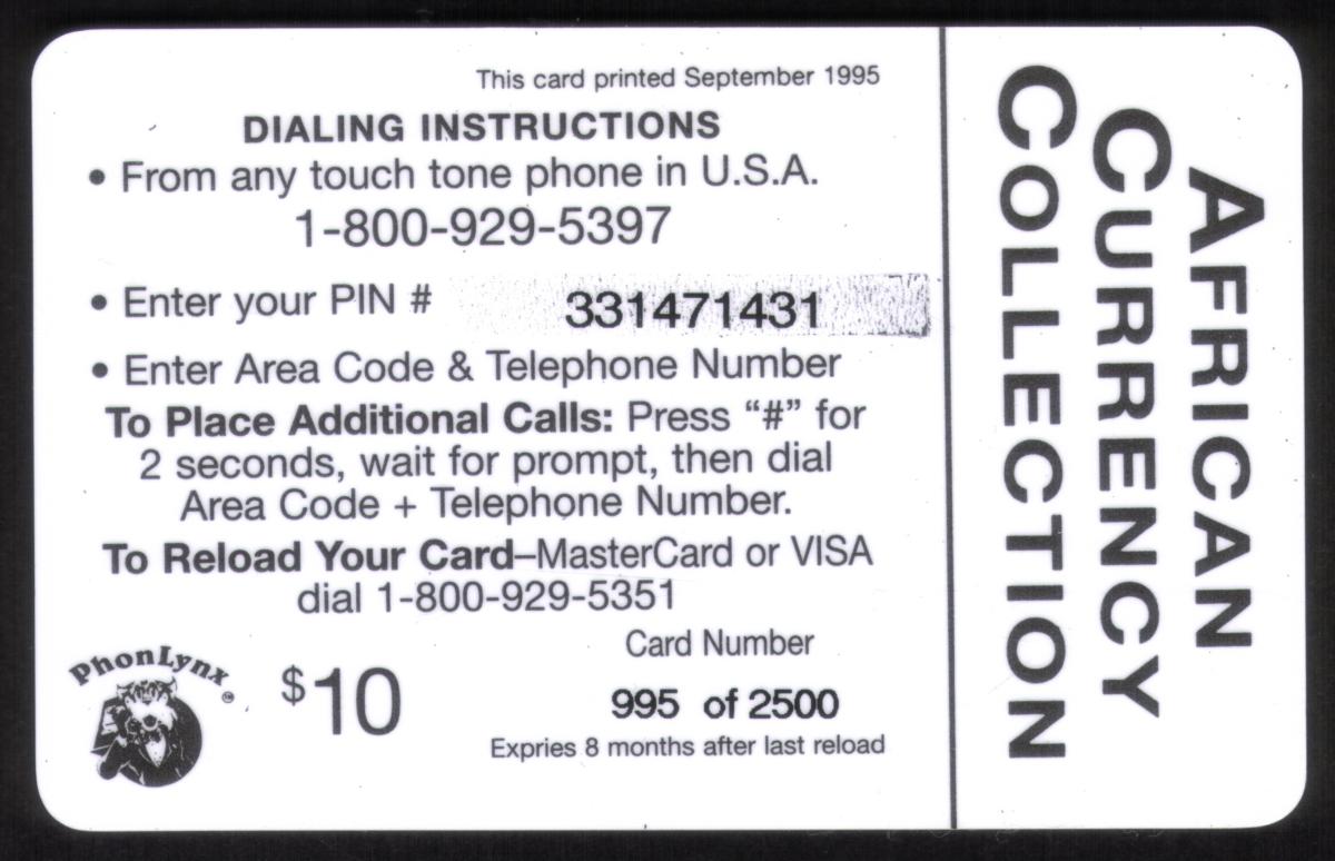 Since we have the world's largest inventory of USA phonecards for collectors, you will not necessarily receive the identical serial/batch/PIN number that we have scanned/pictured.