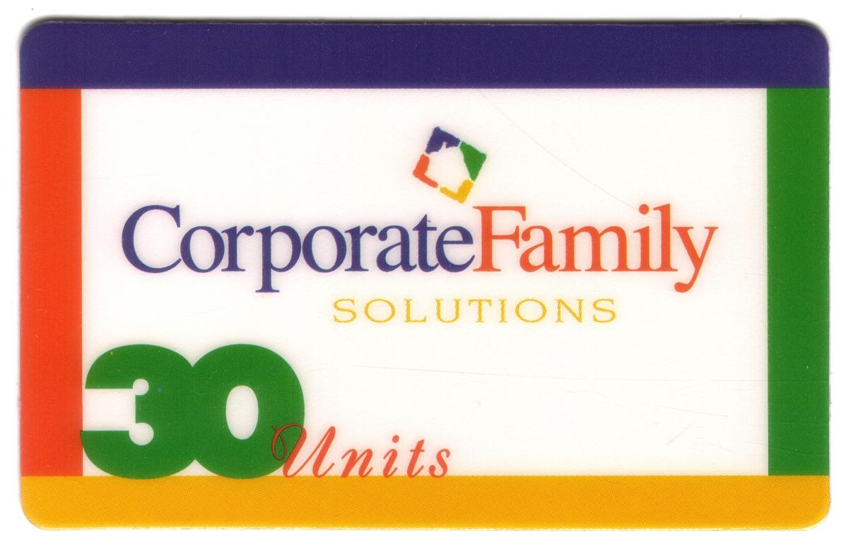 This collectible phone card features the logo and branding of AT&T prominently displayed. The design includes the text "30u Corporate Family Solutions (Day Care) Fundraiser" indicating its association with a fundraising effort. The card supports activities related to fundraisers, charities, non profit organizations, children, and day care centers. The colors used include blue and white, and the AT&T globe icon appears in the upper right corner.