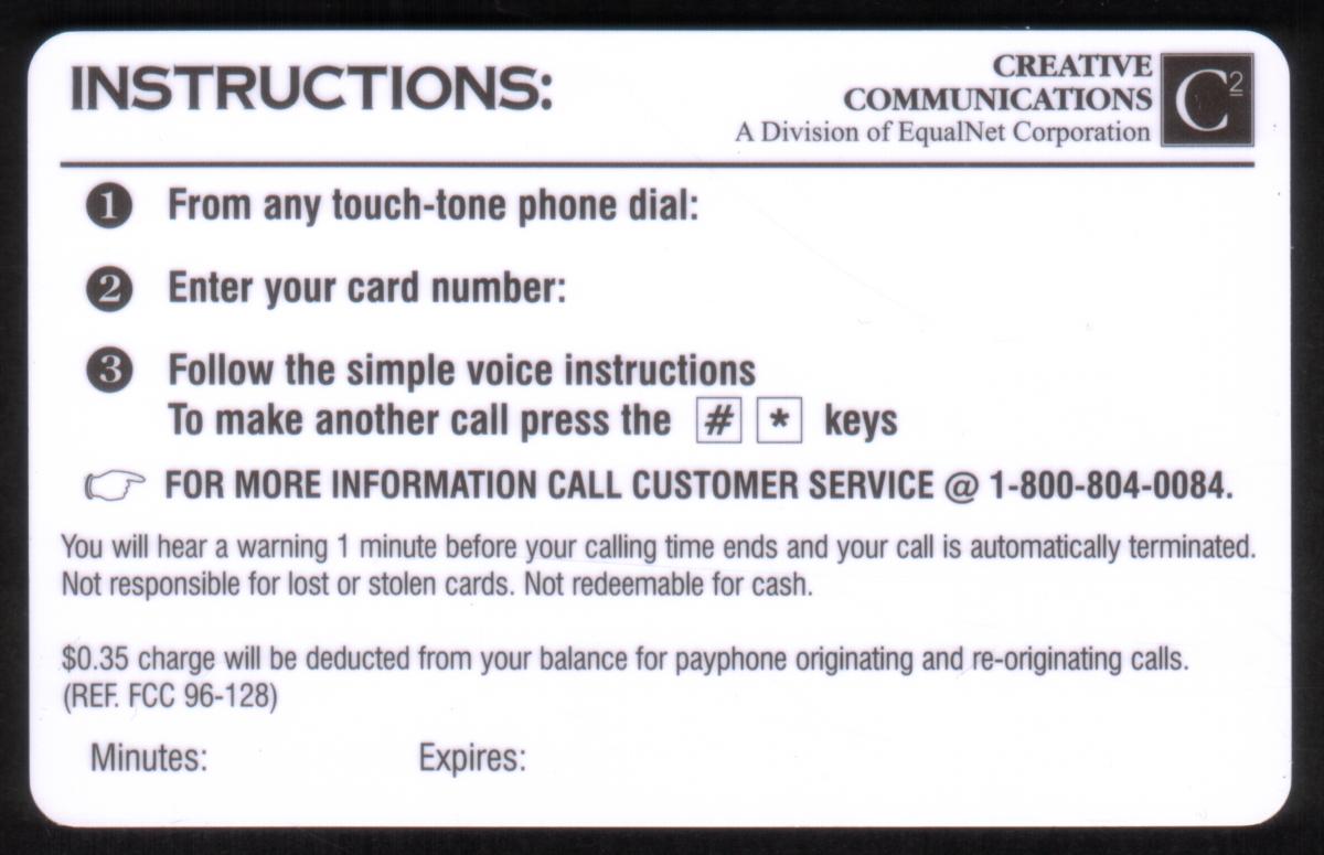 Since we have the world's largest inventory of USA phonecards for collectors, you will not necessarily receive the identical serial/batch/PIN number that we have scanned/pictured.