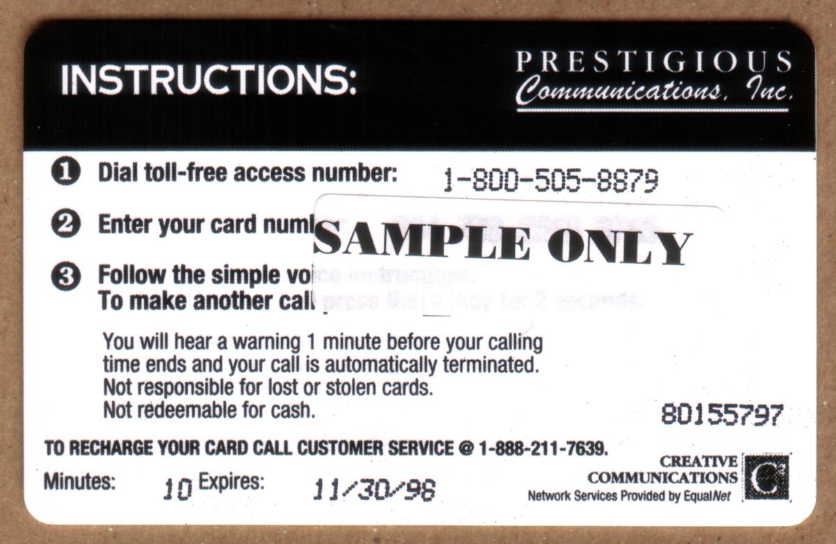 Since we have the world's largest inventory of USA phonecards for collectors, you will not necessarily receive the identical serial/batch/PIN number that we have scanned/pictured.