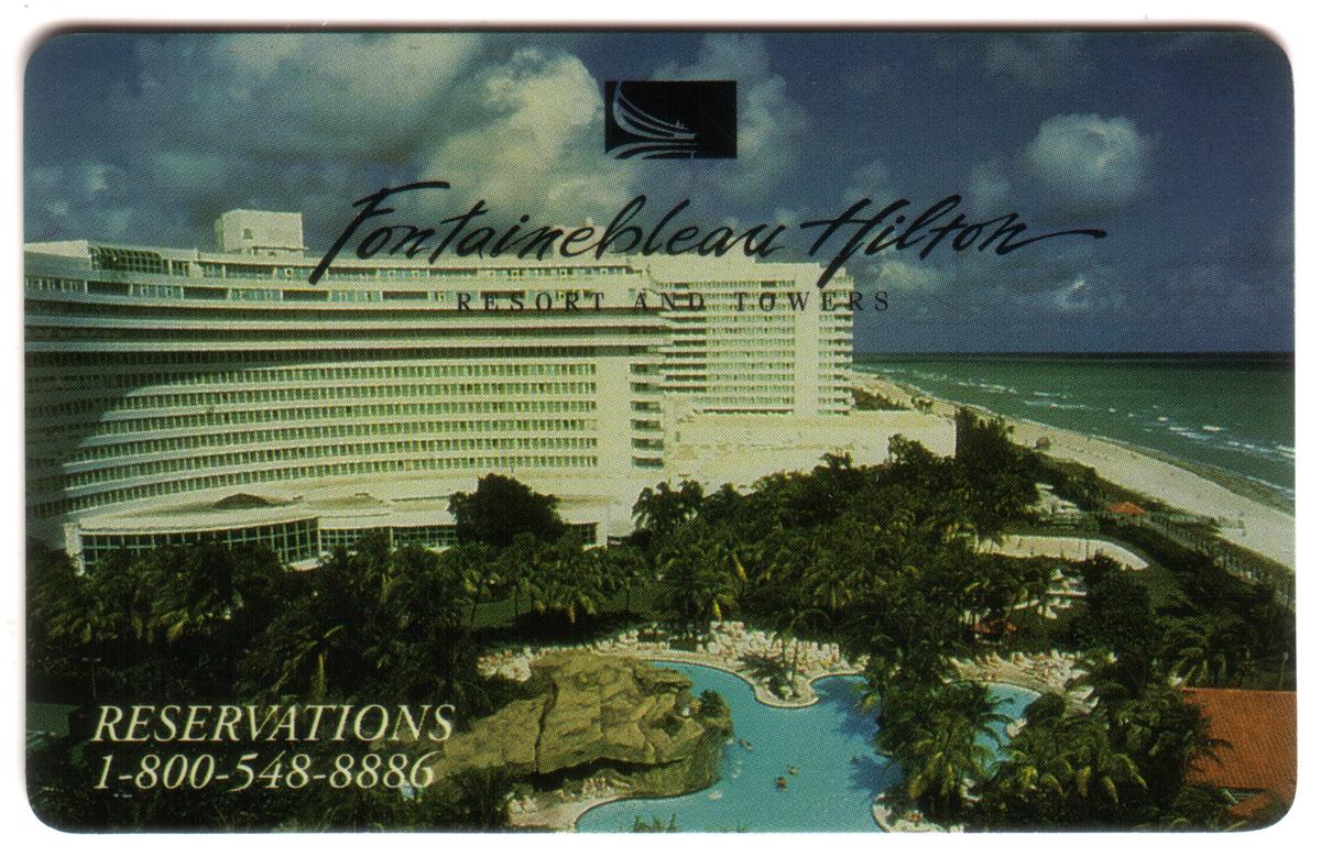 This phone card is part of a promotional series related to hotels and travel, specifically highlighted by the clear branding of the Fontainbleau Hilton Hotel. The combination of the hotel image and the descriptive textual elements makes it a distinct collectible that celebrates Miami’s coastal attractions and hospitality industry.