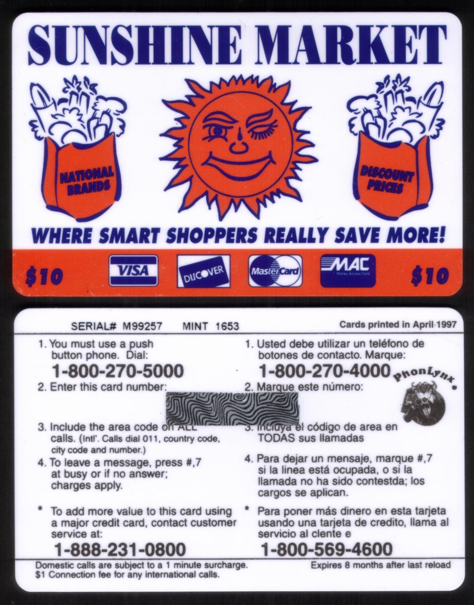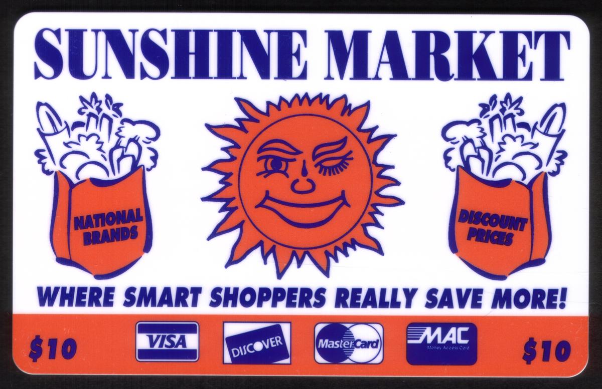 $10. Sunshine Market (Includes VISA, MasterCard, Discover Logos)