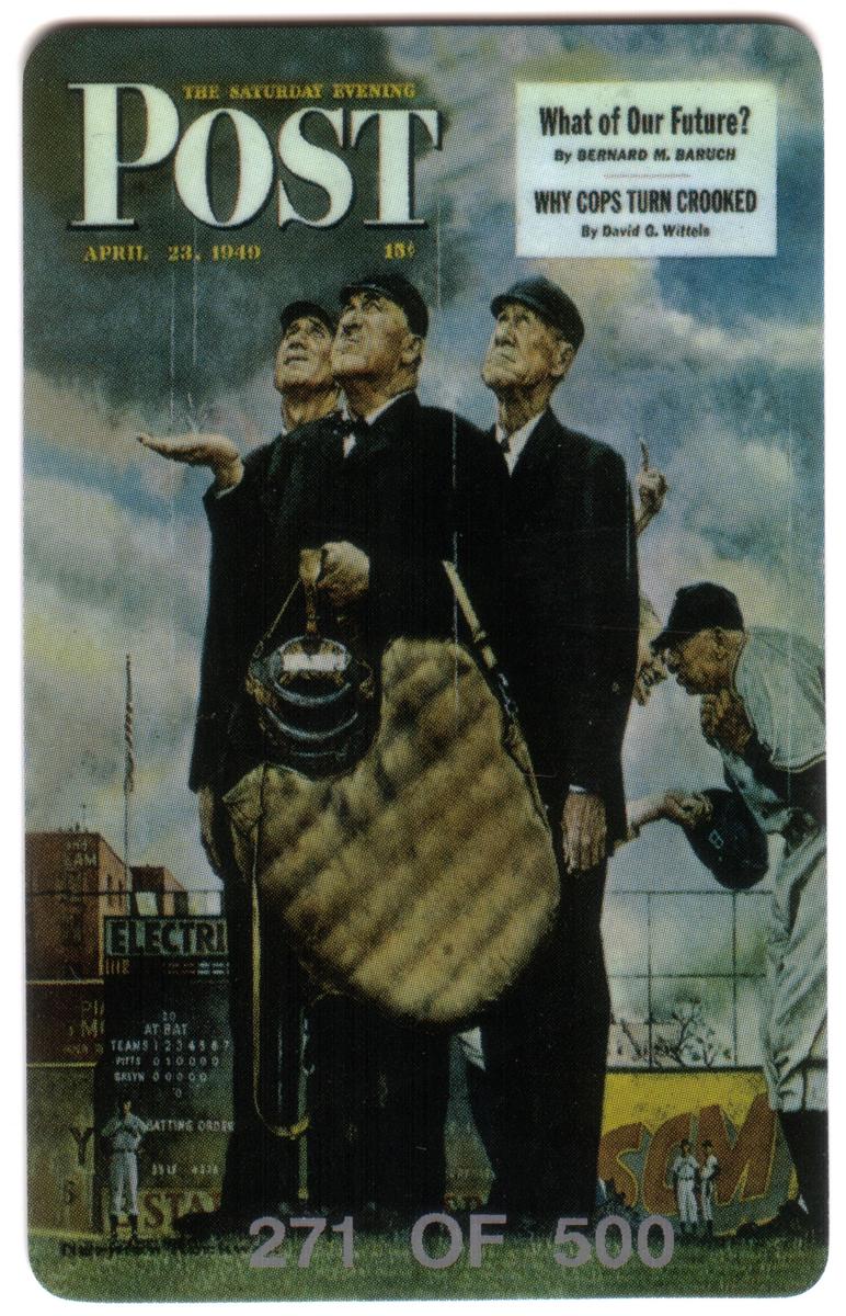 These cards collectively celebrate baseball heritage through Norman Rockwell’s illustrative mastery and The Saturday Evening Post’s historic covers, each piece numbered to mark limited edition collectible status by TekTel Marketing Inc.