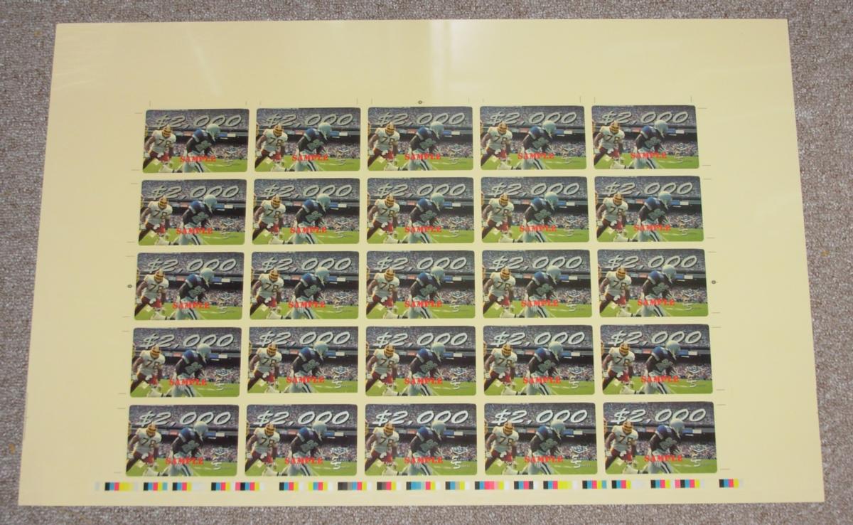 This particular item is an uncut sheet with multiple cards or images, focusing on Emmitt Smith’s role within the 1995 Coca-Cola NFL promotion. The Score Board Inc. was the issuing company, known for producing sports-related collectible cards and promotional items. The card’s clean layout, clear photographic image, and prominent logos make it an attractive piece for NFL fans and sports card collectors.