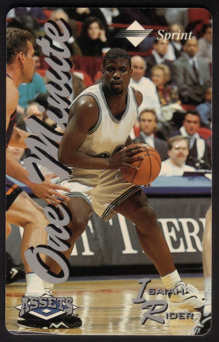 These collectible cards are from The Score Board Inc.'s "One Minute Assets Series #2" issued in 1995, distributed by Sprint. The series features a complete set of 24 different sports cards, each capturing an athlete engaged in action from various sports including baseball, football, auto racing, hockey, and basketball. Each card includes the "One Minute" branding prominently diagonally across the card, the "Assets" logo in the bottom left, and the "Sprint" logo at the top right.