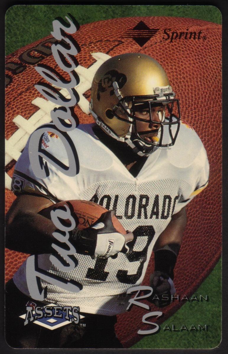 This collectible card features Rashaan Salaam, a professional football player known for his time in the National Football League (NFL). The card is part of the 1995 Assets Series #2, issued by The Scoreboard Inc. It prominently displays Rashaan Salaam in his football uniform, highlighting his status as a notable NFL athlete.